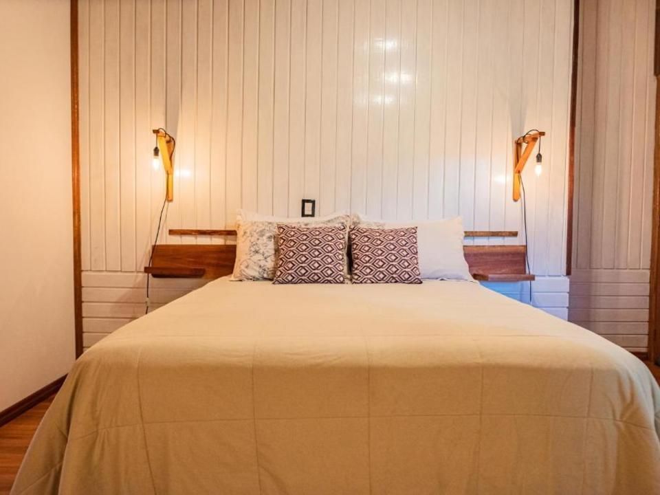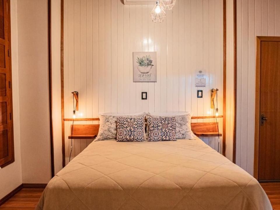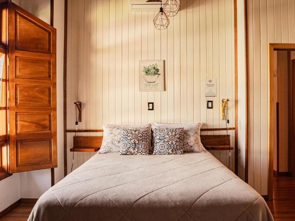 Suíte aconchegante e rústica com vista privilegiada para os vinhedos e comunidade local, ideal para você descansar após um passeio pelo Vale dos Vinhedos. Para o seu conforto, conta com ar-condicionado (quente e frio), cama queen, TV de tela plana com Netflix, mesa de trabalho e banheiro com aquecimento no chuveiro e torneiras.